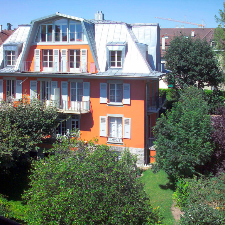 Par la suite, celle-ci devint une pension de famille pour étudiants désireux de pouvoir s’épanouir dans un cadre de travail agréable. On imagine les joutes verbales, à la nuit tombée, les pieds dans le gazon, le verre à la main, les idées en formation rapprochée. Le bâtiment actuel a trouvé sa nouvelle raison d’être en 1983. Sous la forme de logements meublés accueillant familles en vacances helvétiques, quelques célébrités culturelles provenant des théâtres voisins ou des professeurs discrets, attirés par la proximité avec des institutions tels l’IMD, l’EPFL, l’UNIL… Le cadre s’est fait plus discret, mais la source d’inspiration a été préservée.